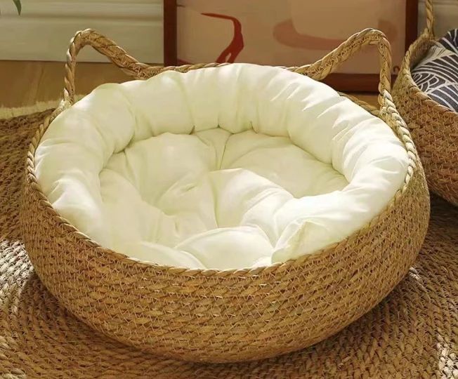 Il nostro nido per animali in tessuto di vite fatto a mano è realizzato al 100% in cotone , garantendo il comfort e il calore del tuo amico a quattro zampe durante l'inverno.